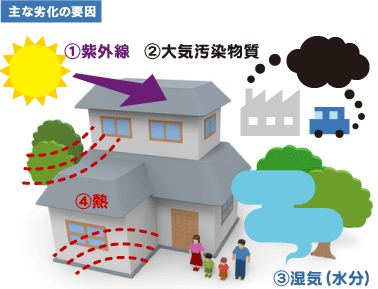 建物の劣化は、主に次のような要因により起こります。