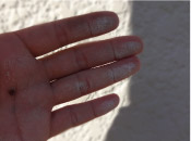 • 表面が紫外線により破壊される現象。汚れが付着しやすくなり、進行すると剥離等の原因にも場合もある。