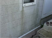 • 初期症状は色あせ。脆くなった表層が粉化し、風雨等により流される。洗浄すると基材がむき出しになる場合もある。